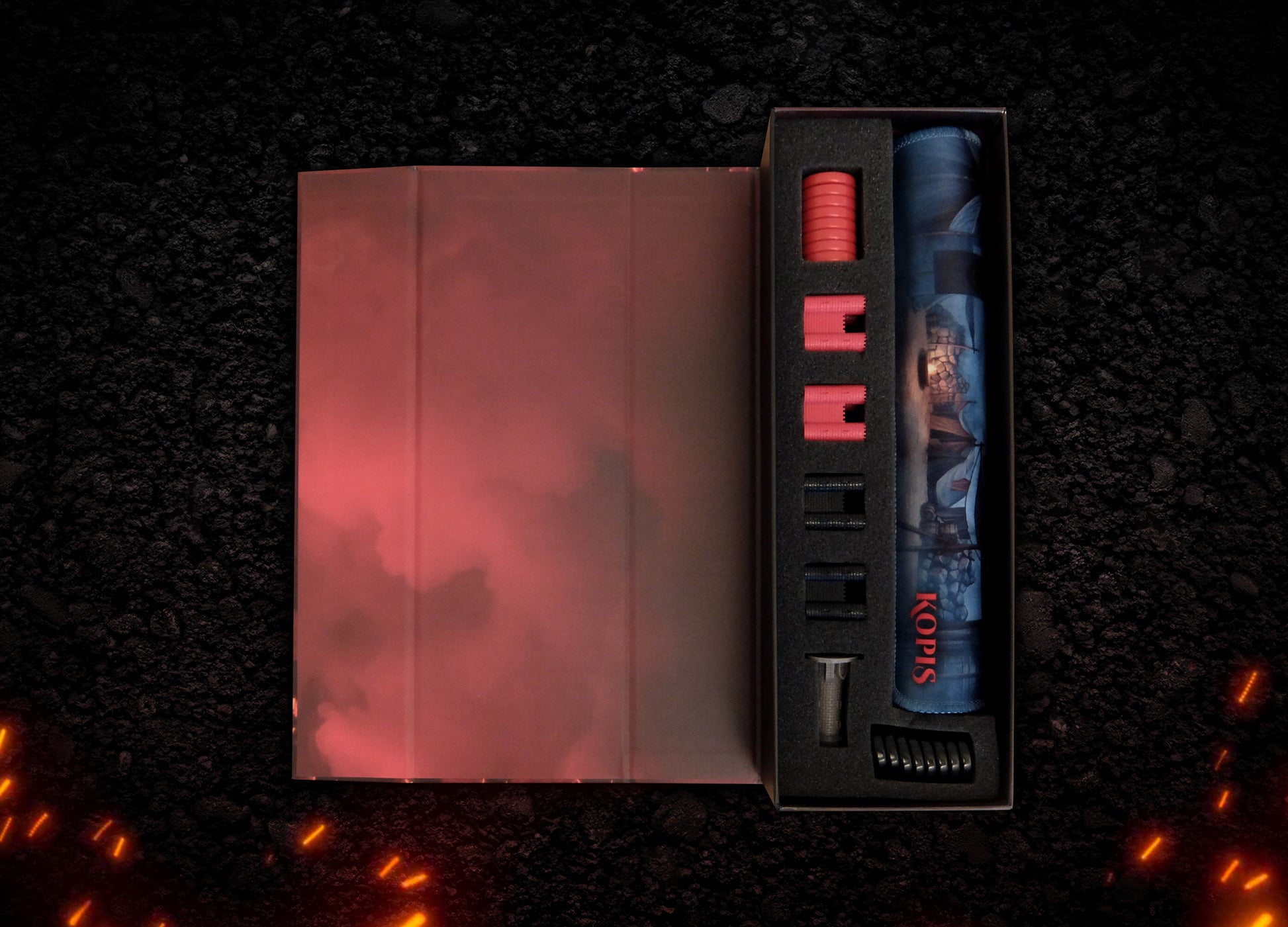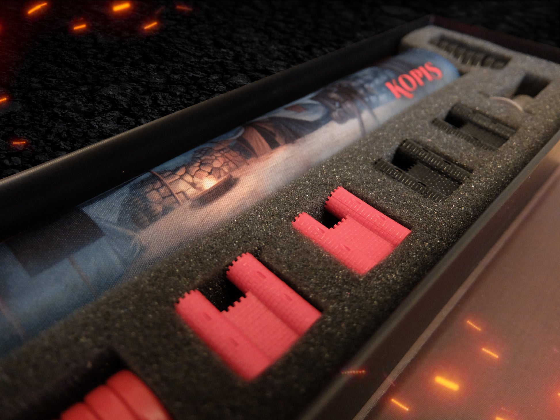 Sturdy fold-out linen-finish box with mag-clasp closing, rubber/neoprene style playing mat, exquisitely detailed stronghold, citadel and faction playing pieces stored within a quality foam insert, and rules in multiple languages - English, French, German, Spanish, Italian & Greek -make this a must-have addition to your gaming portfolio.