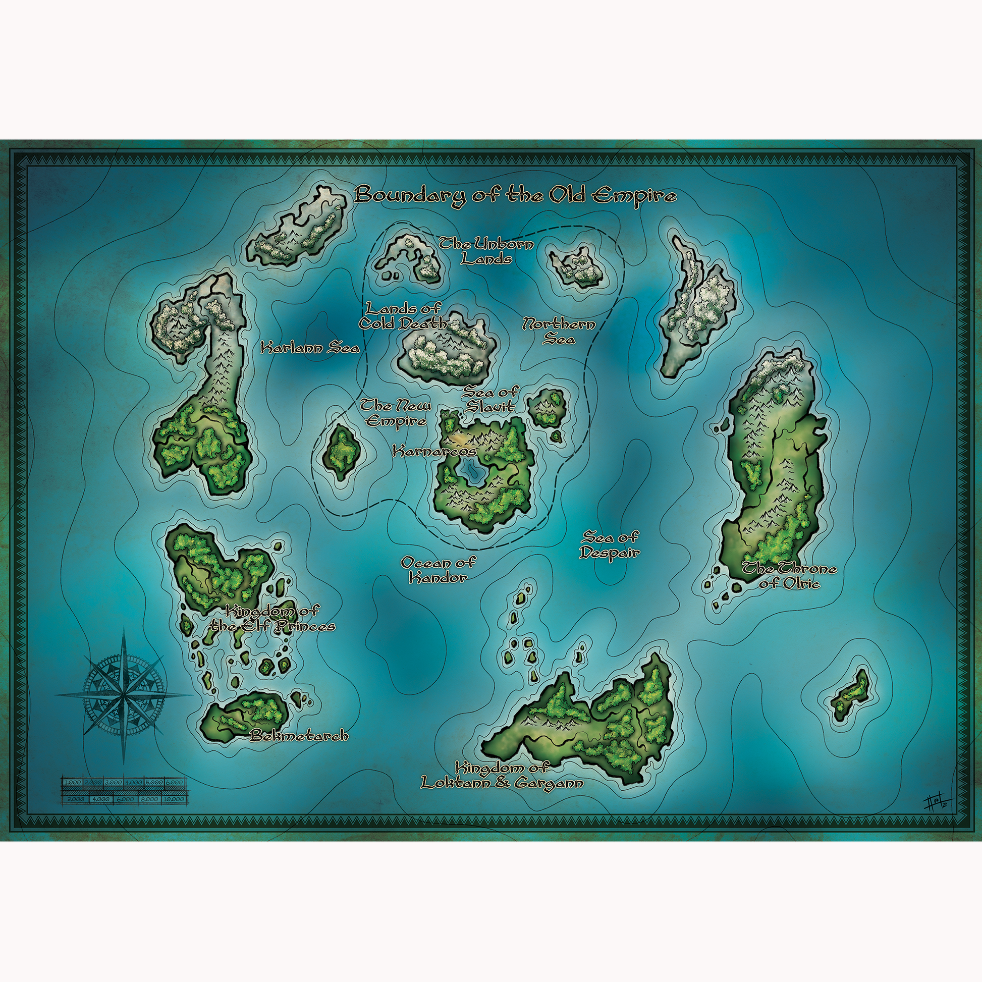 Finely detailed map of the World of Thargos and its Oceans, ideal for extending your story mode scenarios further afield, and for your RPG needs. Makes great wall-art too!